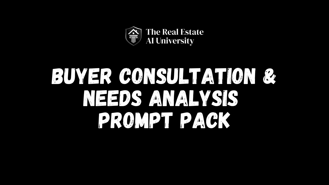 The 800-prompt Buyer Consultation & Needs Analysis Prompt Pack helps you qualify potential leads faster, set proper expectations, and deliver strong service to any of your buyer clients.Â